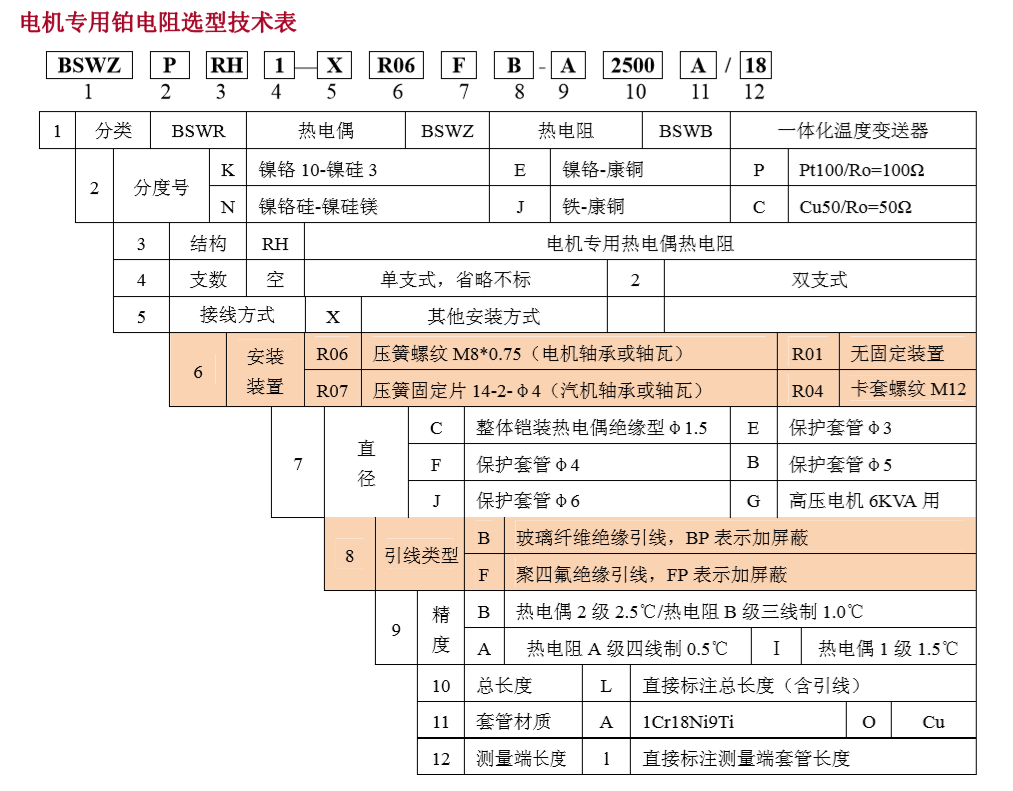 BSW□□RH 型電機專用熱電偶/阻是根據(jù)大型電機、汽輪機、發(fā)電機、鼓風(fēng)機等旋轉(zhuǎn)類設(shè)備的高速運轉(zhuǎn),由于潤滑或冷卻等原因,造成軸承或軸瓦升溫過快或過高,或者由于負(fù)荷、電流、絕緣、繞組等因素發(fā)生變化,引起線圈繞組升溫過快或過高,要求對軸承軸瓦或線圈繞組實現(xiàn)溫度監(jiān)控和超溫報警。它主要由測溫探頭、高溫引線、安裝固定裝置等三部分組成,小型測溫探頭緊密可靠地接觸被測面,從而準(zhǔn)確地連續(xù)地反應(yīng)出被測點的溫度。它具有測溫精度高、熱響應(yīng)時間快、結(jié)構(gòu)簡單、安裝方便、成本低、安全可靠、電氣性能穩(wěn)定、使用壽命長等優(yōu)點,是大型電機、汽輪機、發(fā)電機、鼓風(fēng)機等旋轉(zhuǎn)類設(shè)備的理想測溫產(chǎn)品,對長期 連續(xù)運行的大型旋轉(zhuǎn)類設(shè)備的保護起著非常重要的作用。