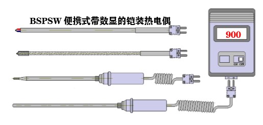 BSPSW帶數(shù)顯的鎧裝熱電偶,其中數(shù)顯表是無源的,小巧方便,結(jié)構(gòu)緊湊,LED顯示,便于手上操作,而熱電偶同數(shù)顯表之間采用小扁插連接,便于熱電偶的更換。