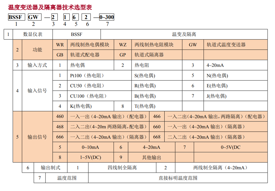 BSSFWR及BSSFGW溫度變送器,是把溫度傳感器所測得信號放大并轉換成線性關系的4~20mA,并遠傳給控制室做顯示、記錄和調節(jié)。溫度變送器采用的兩線制傳輸結構,及電源與信號同線傳輸(電源線和信號線共線)。兩線制溫度變送器根據(jù)功能可以分為普通型、隔爆型、本安型;根據(jù)安裝的位置不同可分為模塊式和軌道式;根據(jù)是否隔離分為普通型和隔離型溫度變送器及隔離器技術選型表。